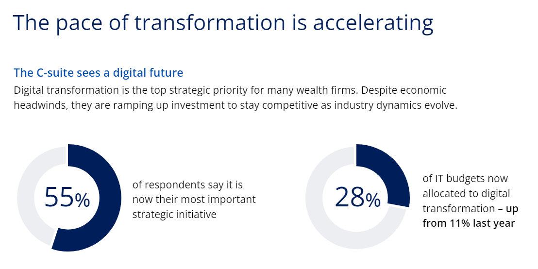 In its 2023 Market Survey and related analysis, Broadridge advises “Wealth firms are seeing tangible benefits from transformation and next-gen technologies, with a positive impact on their customers.”